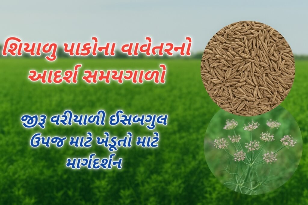 - રવિ (શિયાળુ) પાકોના વાવેતરનો આદર્શ સમયગાળો: જીરૂ વરીયાળી ઈસબગુલ ઉપજ માટે ખેડૂતો માટે માર્ગદર્શન